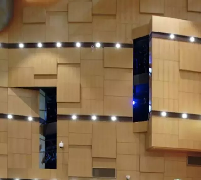 光線從側(cè)面投向舞臺(tái)表演區(qū)的燈位,分別稱之為左、右耳光。用以加強(qiáng)人物和景物的立體感,形成前側(cè)面的照明效果,產(chǎn)生塑型效果。如果與暗部的光比適當(dāng)?shù)嘏浜?,則又可取得豐足、有力的造型作用。人的視角對(duì)側(cè)面光的變化最靈敏,側(cè)光是人物和景受光面的主光,造型的重要工具;以造型為主,照明為輔,為了達(dá)到垂直照明,橫向不少于2個(gè)燈。兩排以上光色相同的耳光同時(shí)投射,位置高的燈通常以投射遠(yuǎn)光區(qū)為主,位置低的燈通常以投射近光區(qū)為主。耳光燈可明裝亦可置于耳光室,耳光室應(yīng)不妨礙觀眾通行且不遮擋邊座觀眾視線,燈具光軸經(jīng)臺(tái)框邊沿延伸至表演區(qū)的水平投影與舞臺(tái)中軸線所形成的水平夾角應(yīng)不大于45°,使邊座觀眾能看到臺(tái)口的側(cè)邊框,同時(shí)不影響臺(tái)口揚(yáng)聲器傳聲。